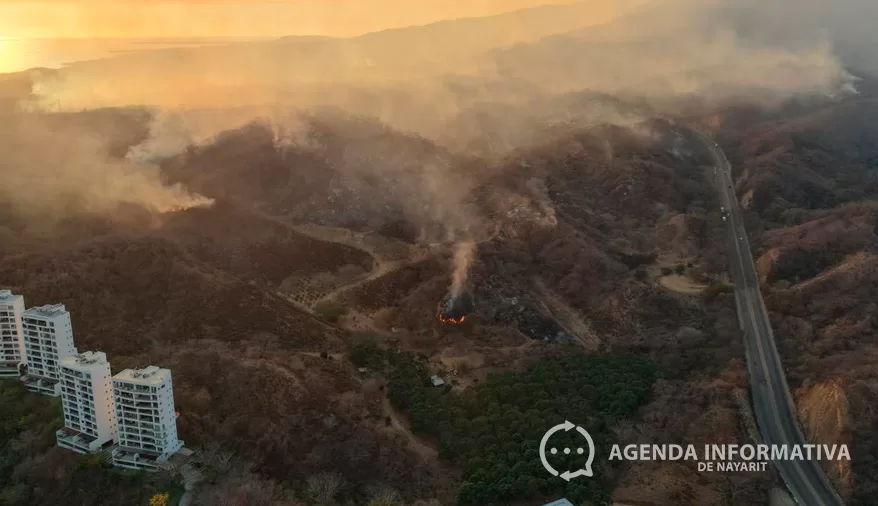 Supera las 500 hectáreas el incendio forestal que se mantiene activo en el municipio de Bahía de Banderas, específicamente en la zona de La Cruz de Huanacaxtle, donde brigadistas continúan trabajando intensamente para su control.
