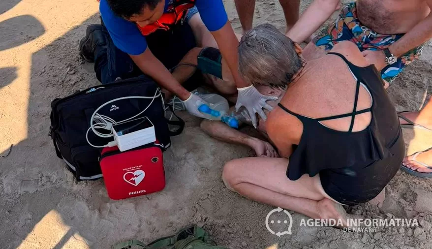 Reviven guardavidas a una turista extranjera que sufrió un ahogamiento en la playa de Rincón de Guayabitos, luego de que perdiera signos vitales y fuera reanimada mediante maniobras de reanimación cardiopulmonar (RCP).