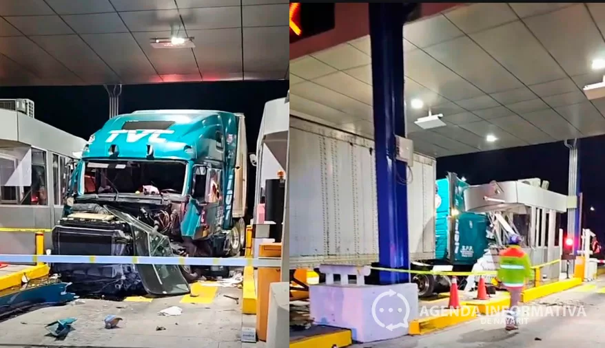 Un tráiler presuntamente se quedó sin frenos y se impactó la noche del martes 16 de diciembre contra la caseta de cobro La Labor, en el municipio de Santa María del Oro, sobre la autopista Tepic–Guadalajara.