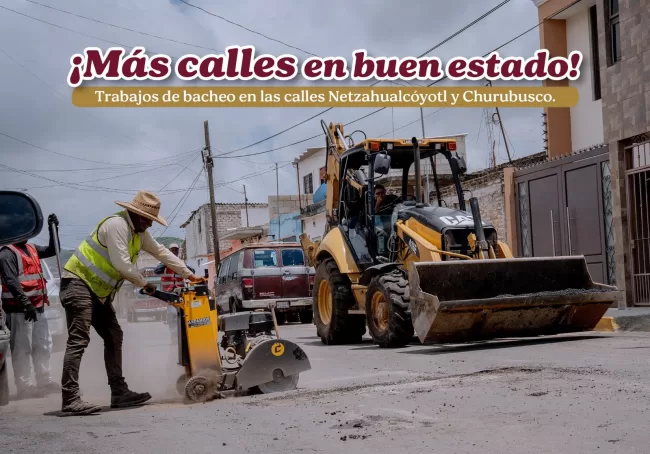 Asimismo, se realizan trabajos de bacheo en calles como Netzahualcóyotl y Churubusco, así como acciones de mantenimiento en otras zonas de la ciudad, incluyendo colonias como Obrera CTM y Rubí.