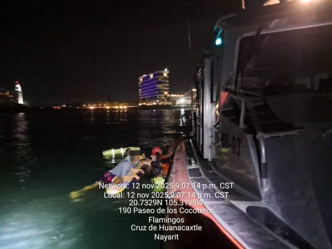 Elementos de Protección Ciudadana y Bomberos de Nayarit, junto con guardavidas municipales y personal de la Secretaría de Marina, participaron en el operativo de rescate. Los tres tripulantes fueron localizados en el mar y recibieron apoyo con marpas acuáticos y torpedos para mantenerse a flote antes de ser subidos a una embarcación de la Marina.